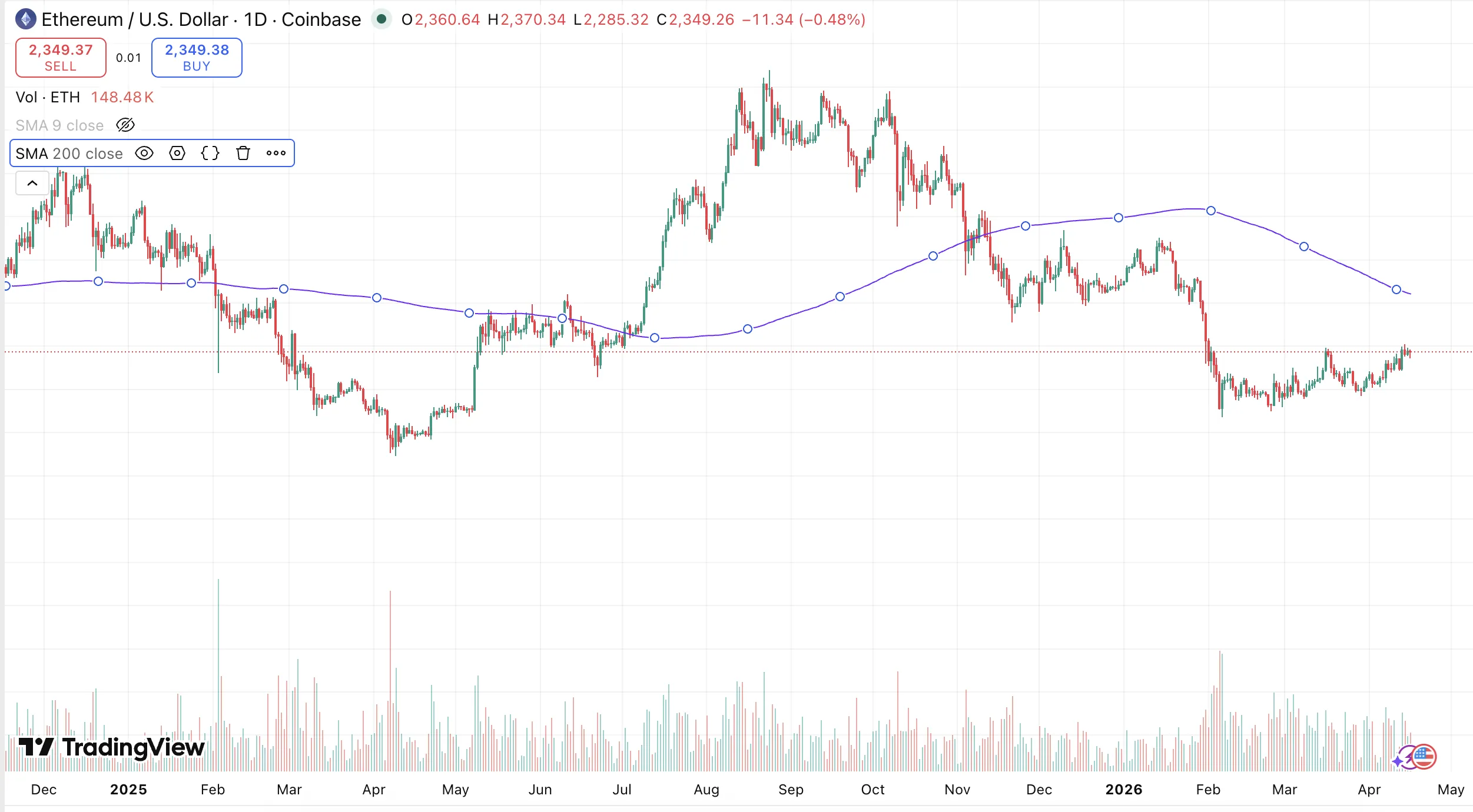 Друг лесен похват е използването на пълзящи средни - simple moving averages. Те могат да се наложат върху цената на криптовалутата, в платформи като TradingView. Пълзящите средни показват средното представяне на цената на актива за даден период от време - 20, 50, 100 или 200 дни, например.